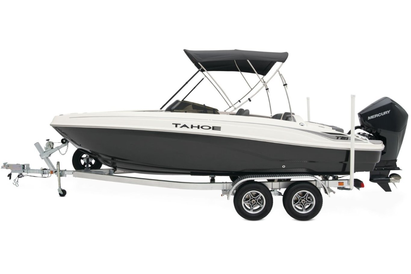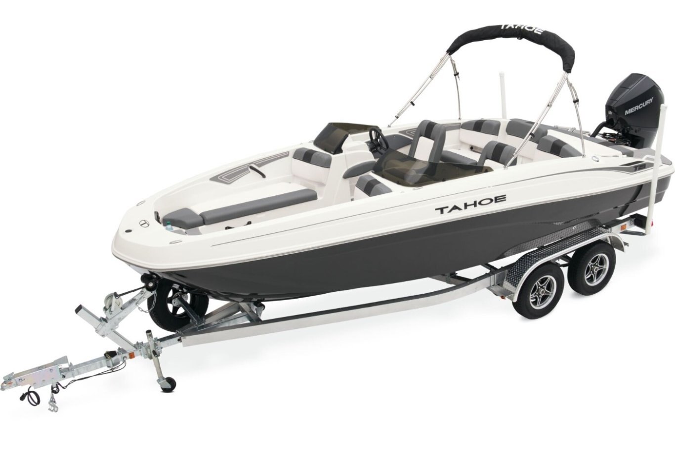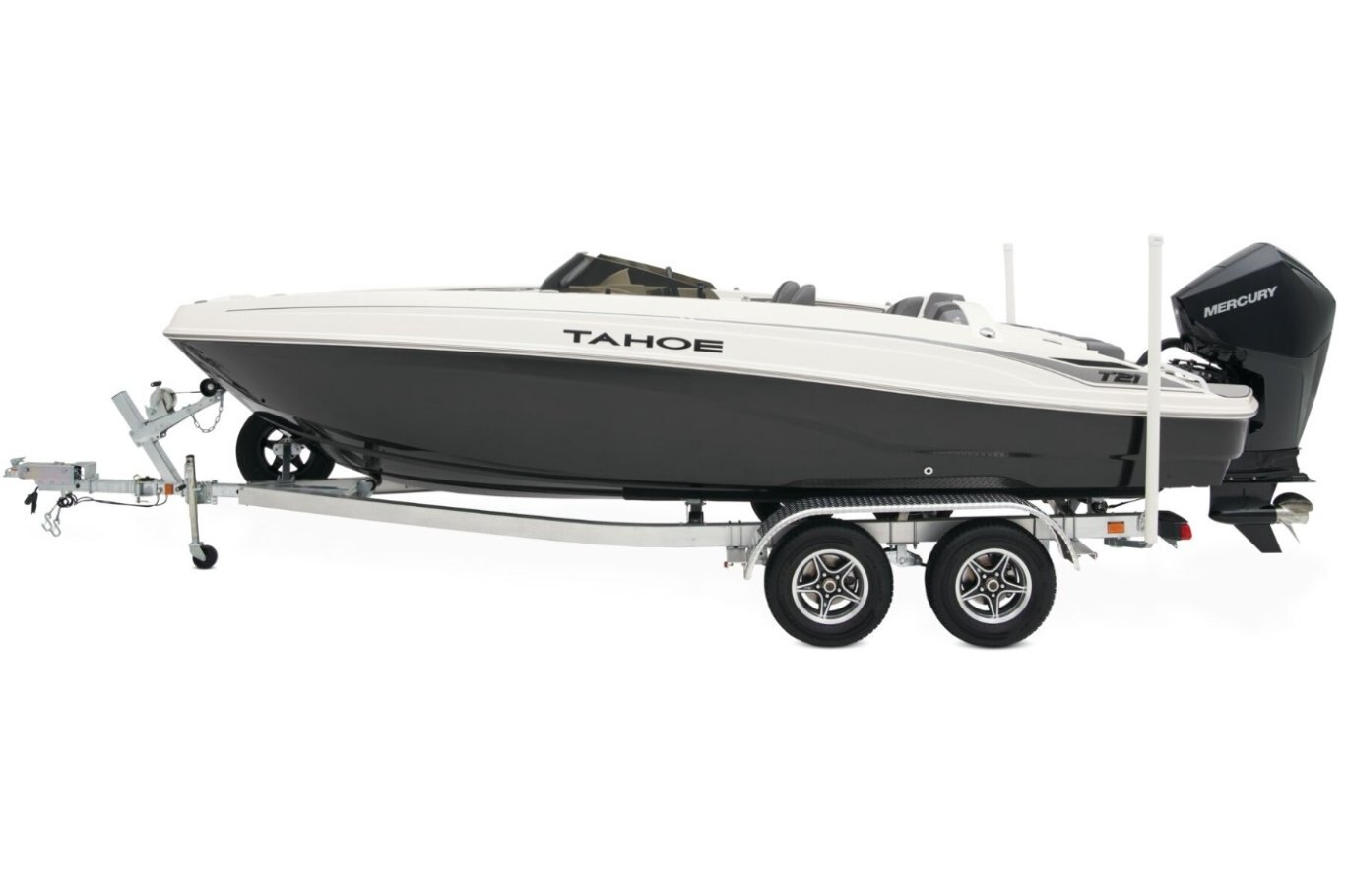 The 2026 TAHOE® T21 comes standard with a 150hp Mercury® XL Pro XS® FourStroke outboard motor and has a recommended maximum 200hp rating. This model is packaged with a trailer.