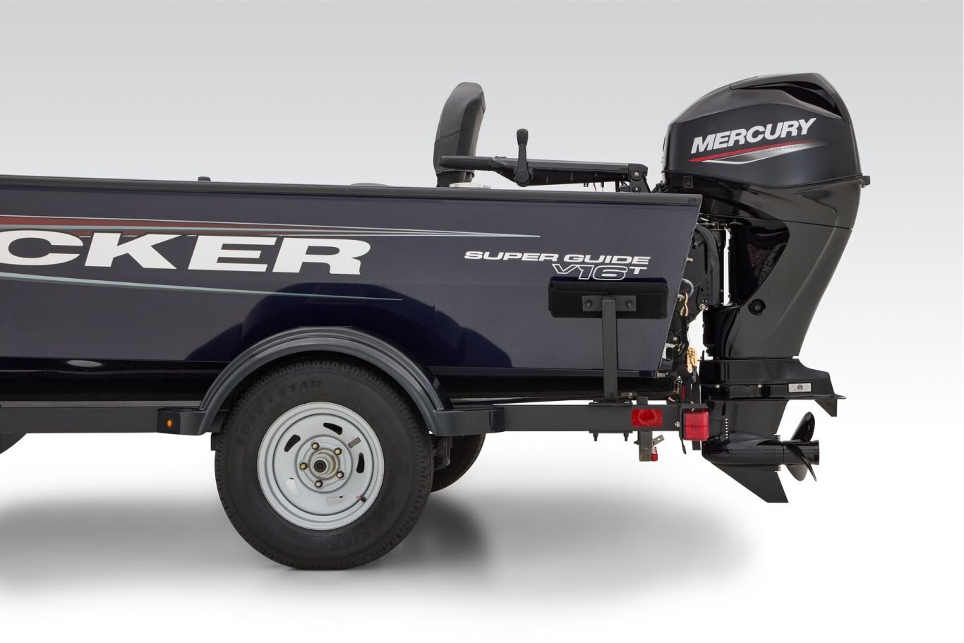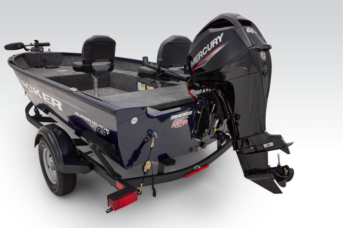 2026 Tracker SUPER GUIDE™ V 16 TThe newest TRACKER begins with a proven and highly acclaimed hull and adds tiller steering for more space, versatility, and simplicity. The Super Guide V-16 Tiller features the same sturdy, proven, and guaranteed build quality as our entire all-welded, rivet-free lineup. With increased cockpit space and a non-skid flooring, the new Super Guide V-16 Tiller is as wide open for possibilities as your day. It's equipped with spacious storages, multiple seating locations, an intuitive and well-equipped gauge pod, and of course, the same peace of mind that runs throughout our lineup. With the tiller in hand, you command smooth, reliable Mercury® power and a boat that's the result of decades of passionately pursuing excellence.