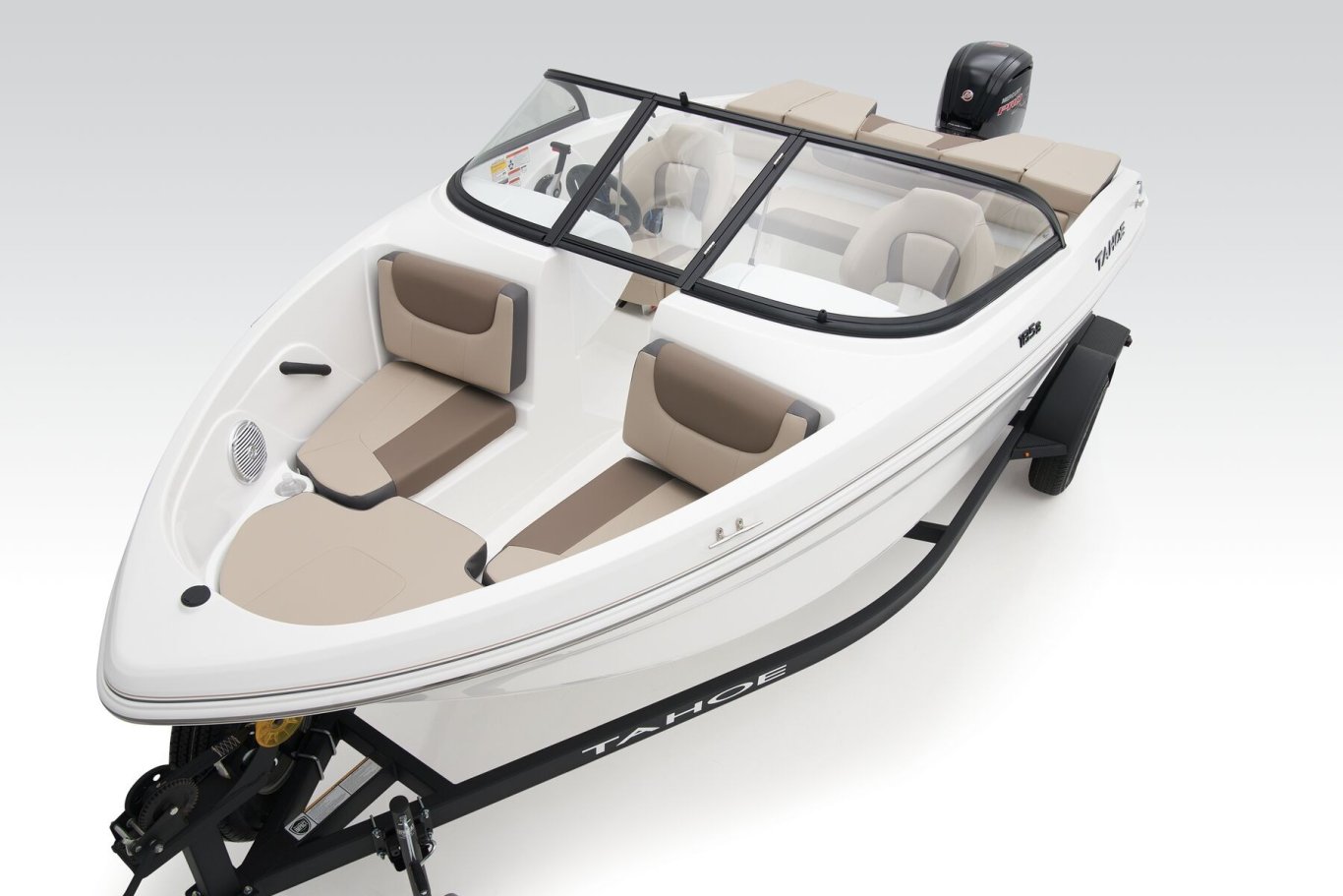 The 2025 TAHOE® 185 S comes standard with a 115hp Mercury® EXLPT Pro XS® FourStroke outboard motor and has a recommended maximum 150hp rating. This model is packaged with a trailer.