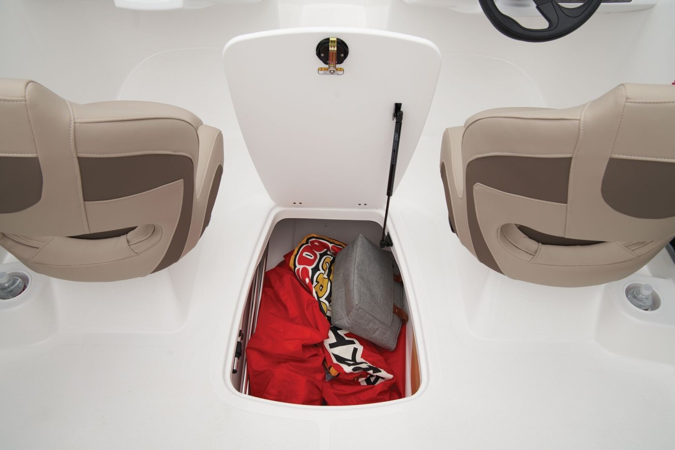 The 185 S is an affordably luxurious runabout boat with room for up to 8 passengers. Kick back and relax in the front deck’s dual seats, the swiveling driver and passenger bucket seats, or the aft bench seat. An in-floor compartment holds your wakeboard or skis. You'll find extra storage under this sport boat's seat cushions. Take hold of the SeaStar® hydraulic steering wheel and feel the engineering performance of the POWERGLIDE® hull design with HYDROSTEP strakes.