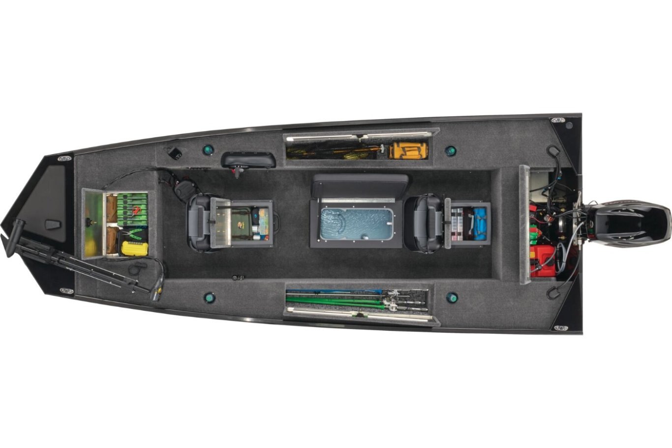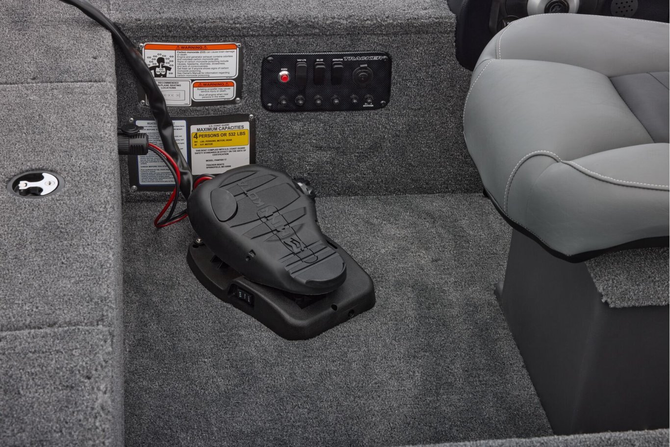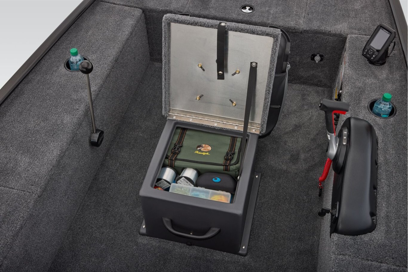 Inside, the Panfish 17 offers a practical and budget-friendly interior. The bow driver’s station includes a throttle and steering stick, complemented by a standard fishfinder and electronics to help you locate and stay on the fish. A large bow storage compartment keeps your gear organized, accessible, and protected from the elements. The cockpit’s well-designed layout provides ample space for you and a friend or two to carry all your essentials for a successful day on the water. A center livewell, topped with a cushioned seat for two, offers convenient fish storage, while the rear fold-down fishing seat conceals additional storage options. Powering this reliable vessel is a smooth Mercury® engine, engineered for efficient and economical performance. Whether you’re seeking a versatile fishing platform or a boat that allows you to catch fish comfortably from your seat, the Panfish 17 continues to be a dependable choice for anglers looking to maximize their time on the water. |