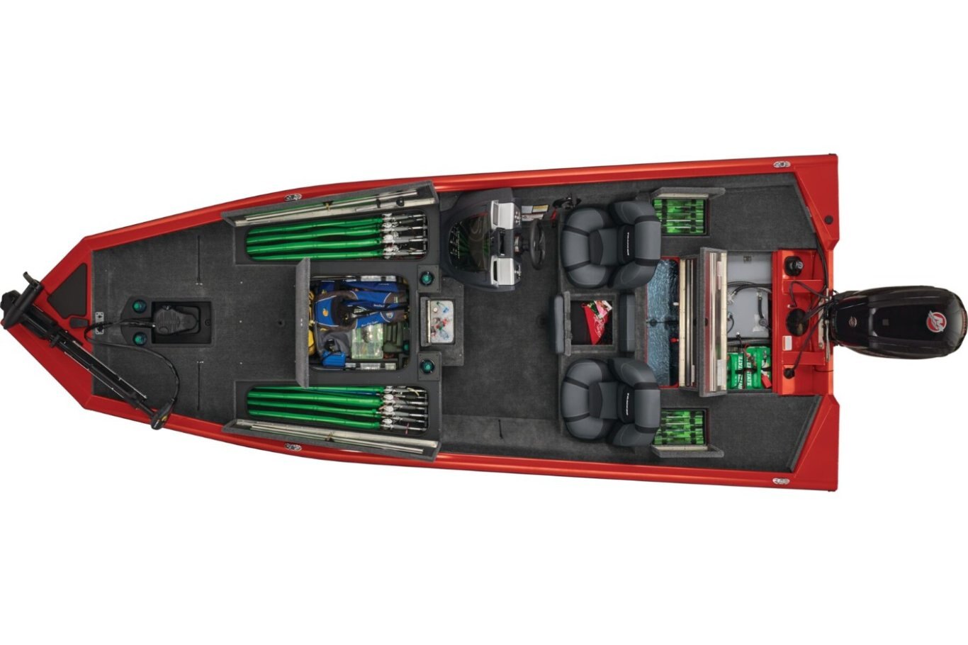 | The TRACKER® PRO TEAM™ 190 has all the features and convenience of a tournament rig with a huge dose of value. The wide-open deck features dual 7' rod boxes, a huge tackle stow and a step with a cooler, along with the cutting-edge Tracker® touchscreen display. This display adds a whole new level of convenience and control to your boating experience by letting you keep an eye on critical engine parameters at a glance. Inside, the robotically-welded longitudinal stringer system unitizes the hull and transom and and is strengthened by foam flotation that works in in concert to give full support to the running surface. Outsisde the hull is protected with our exclusive DIAMOND COAT™ 3.0 finish that is specially formulated for years of rich, fade-resistant protection. And for your peace of mind, the PRO TEAM™ 190 is backed by the TRACKER PROMISE—the best factory warranty in aluminum boats, with 5-year bow-to-stern coverage and a lifetime deck and hull structure warranty. |