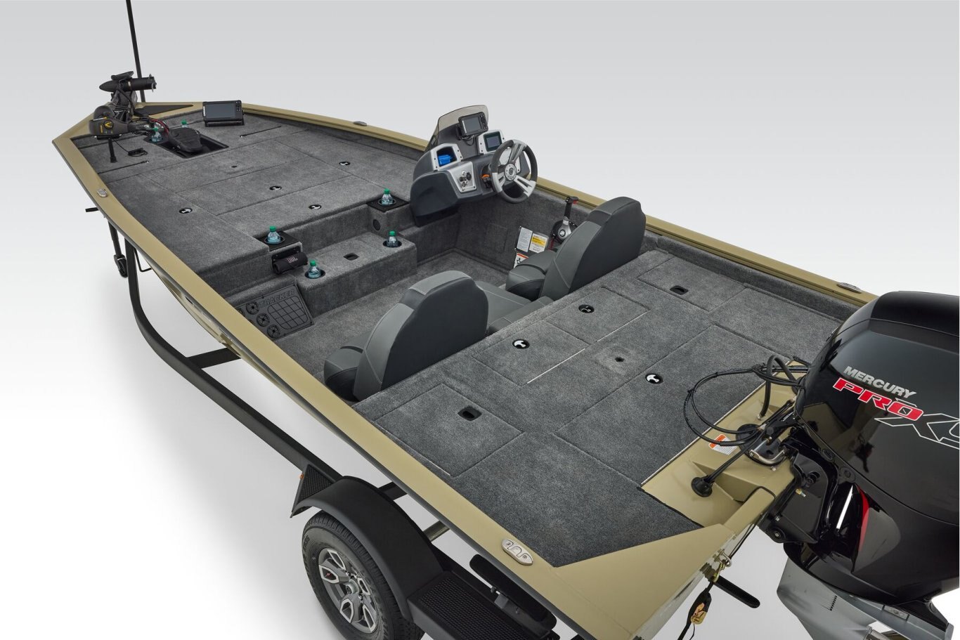 | The TRACKER® PRO TEAM™ 195 is the flagship bass boat of the PRO TEAM lineup, designed to elevate your fishing experience. This large, fast, all-welded boat is equipped with carefully selected features to help you excel on the water. Its proven layout includes dual Lowrance® fishfinders, an upgraded Minn Kota® trolling motor with two batteries, spacious center tackle storage, and dual 8’ bow rod boxes—giving you everything you need for a successful day of fishing. Additionally, the boat now features a state-of-the-art Tracker touchscreen gauge display, providing a new level of convenience and control by allowing easy access to crucial information and features. Powered by a smooth and reliable 150 hp Mercury FourStroke outboard engine, this boat delivers top-notch performance. With the TRACKER PROMISE, which offers the best factory warranty in aluminum boats, you can fish with confidence knowing you’re supported by the industry’s best. The TRACKER® PRO TEAM™ 195 is truly the ultimate fishing machine for anglers who demand the best. |