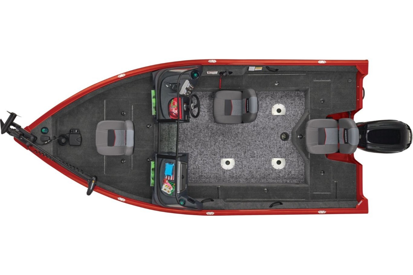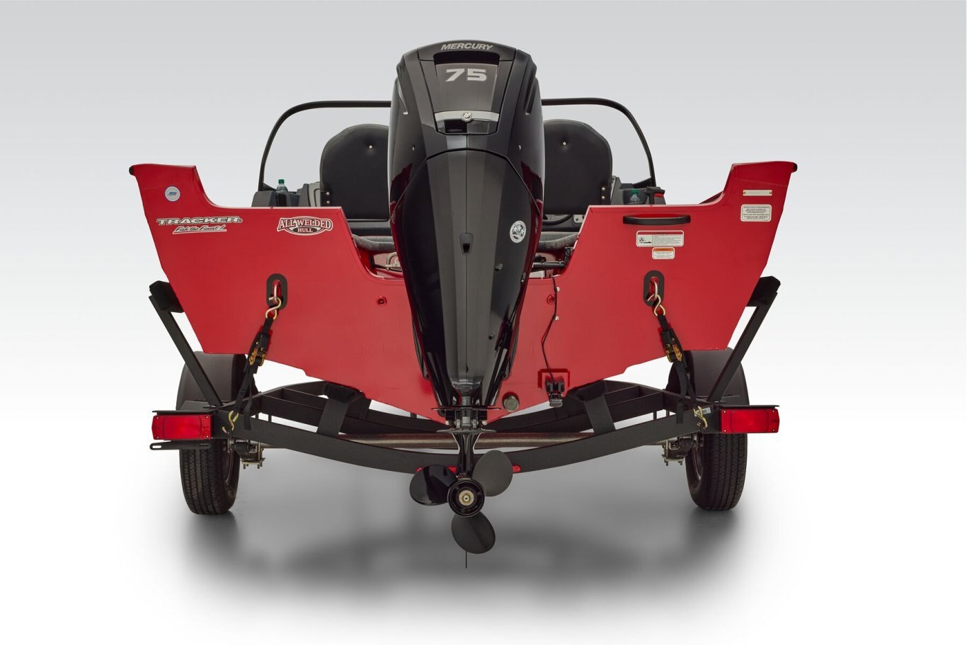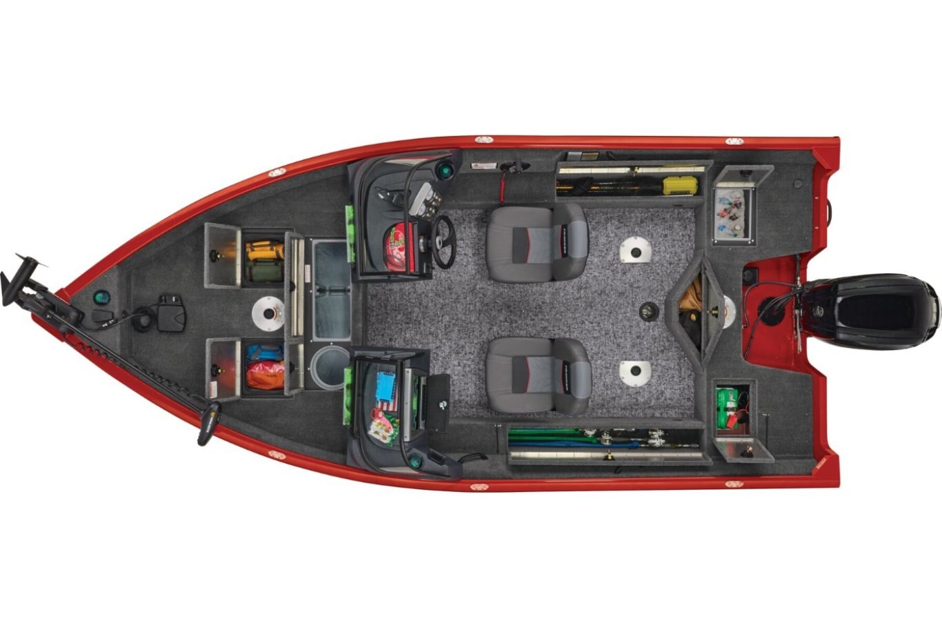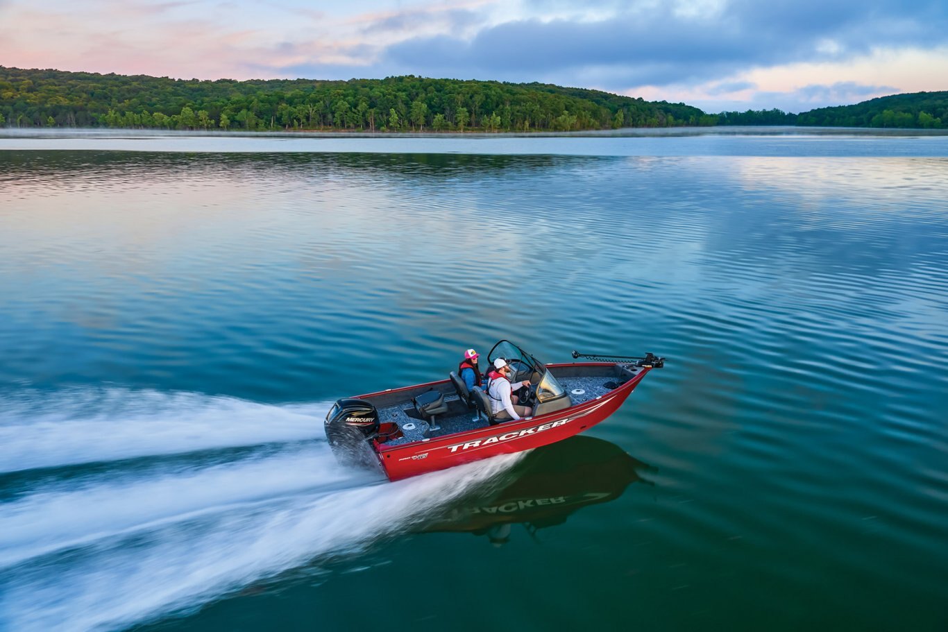 The TRACKER PRO GUIDE V-16 WT packs a punch in a compact, Deep V hull design. The walk-thru windshield shields you from the elements, ensuring comfort in all conditions. With three fishing seats and six customizable setups, the PRO GUIDE V-16 WT is ready for your whole crew. The Deep V hull is sdesigned for smooth, dry performance and peak edge-to-edge stability. It has space galore, so you can haul all your gear with ease. Up front is a standard Minn Kota trolling motor with a livewell/baitwell and twin storage boxes while the console features a Garmin Striker 4 color fishfinder with a full gauge setup and smooth, reliable steering. Rounding out the package are a custom-fitted trailer and reliable, economical four stroke Mercury power. |