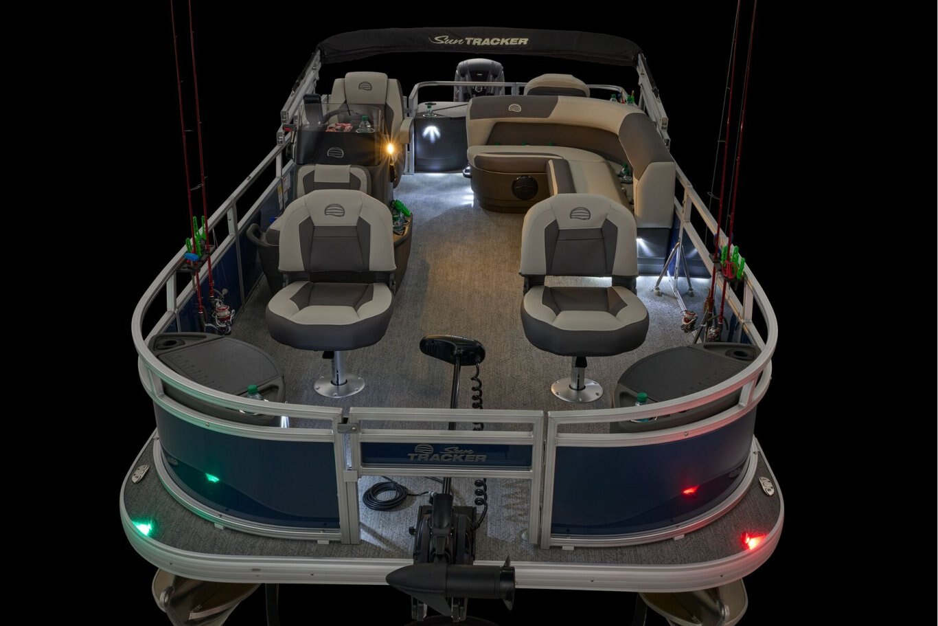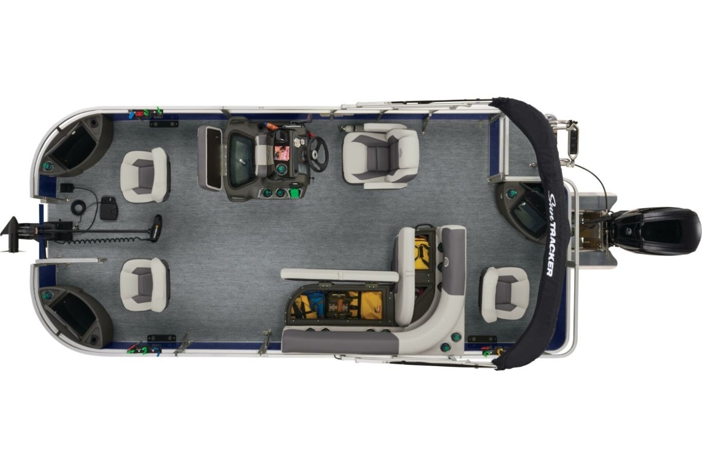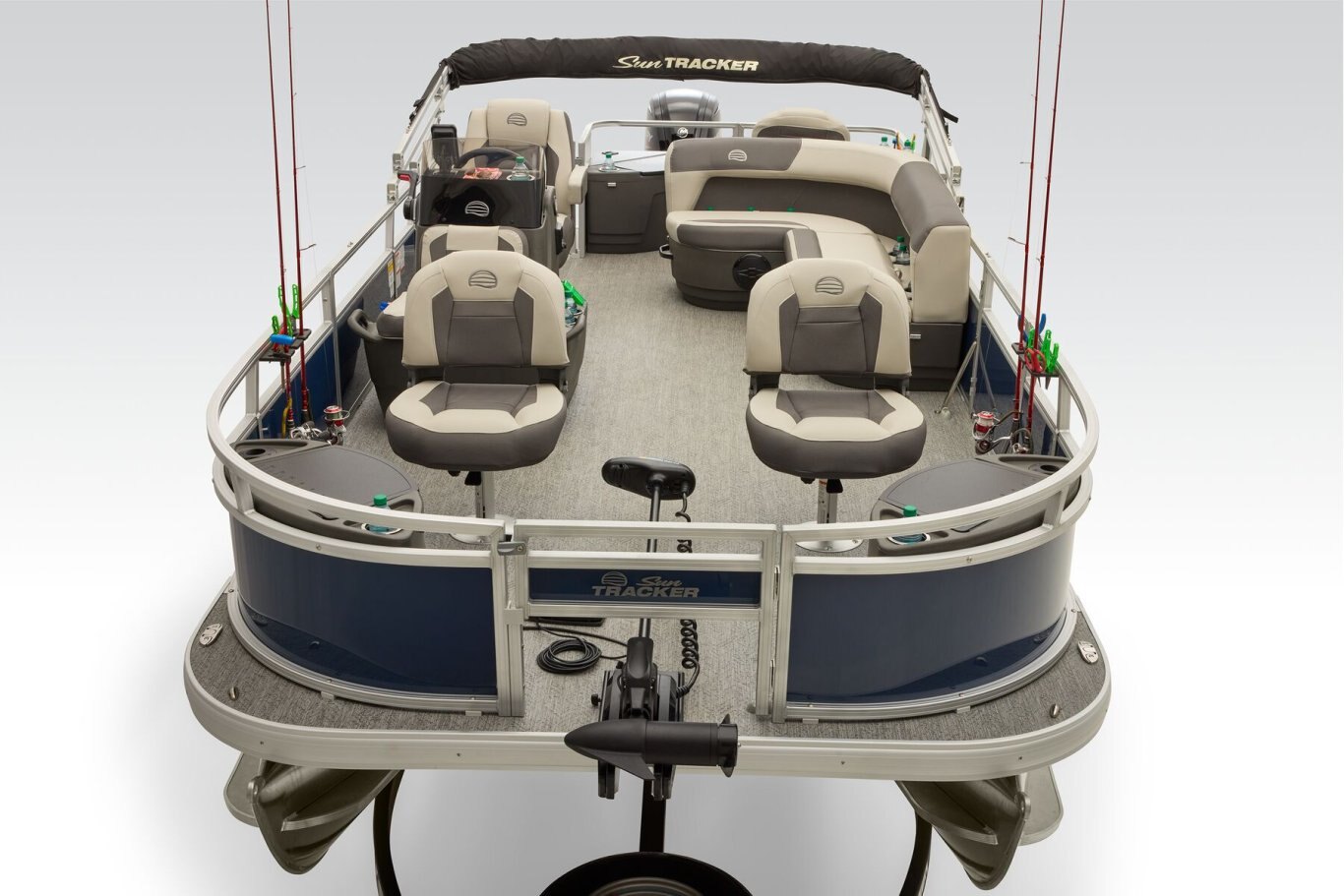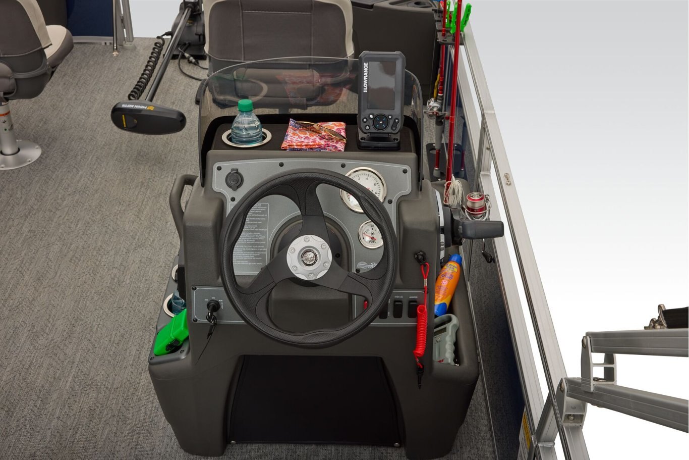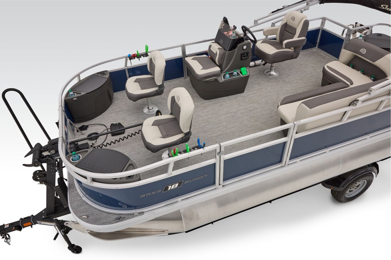 Up to eight fishin' buddies can take to the dual fishing decks of this redesigned fishin' pontoon. Three swiveling fishing chairs around a 10-gal. bow livewell and an 8-gal. aft livewell headline the list of features that make this the perfect boat for casting lines to catch fish and memories. When the fishing's done, sprawl out on the L-shaped lounge and crank up the stereo. The new and improved boarding ladder makes follow-up cannonballs a breeze. Other features new to the 2026 model year include three extra cubic feet of storage space, more cupholders, in-lounge storage, and a new seat in front of the helm. From reeling in bass to exploring your favorite lake, this BASS BUGGY is built for you and your crew. |