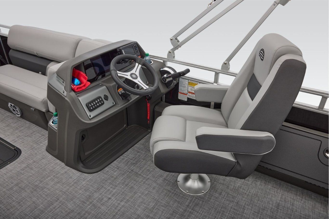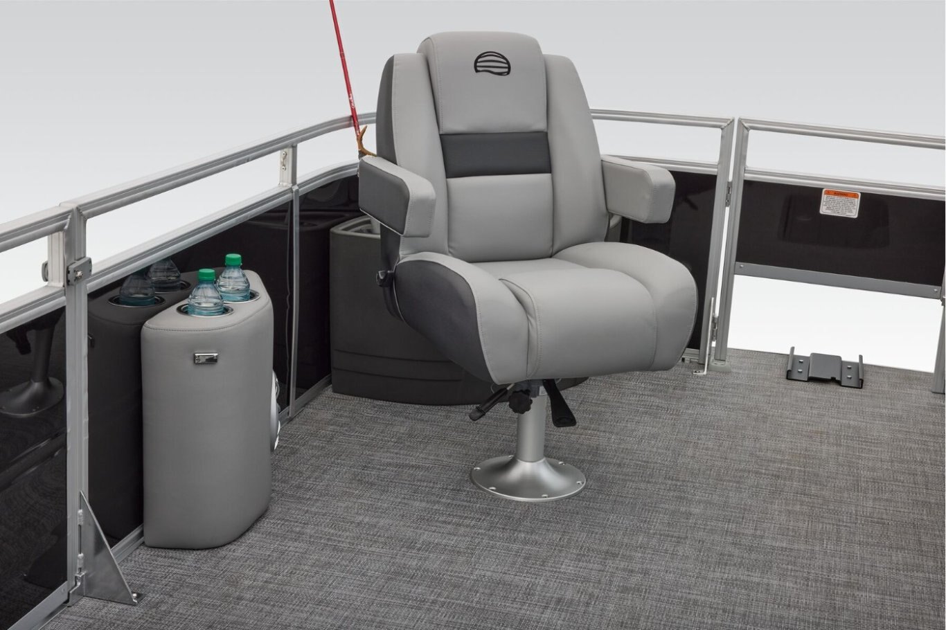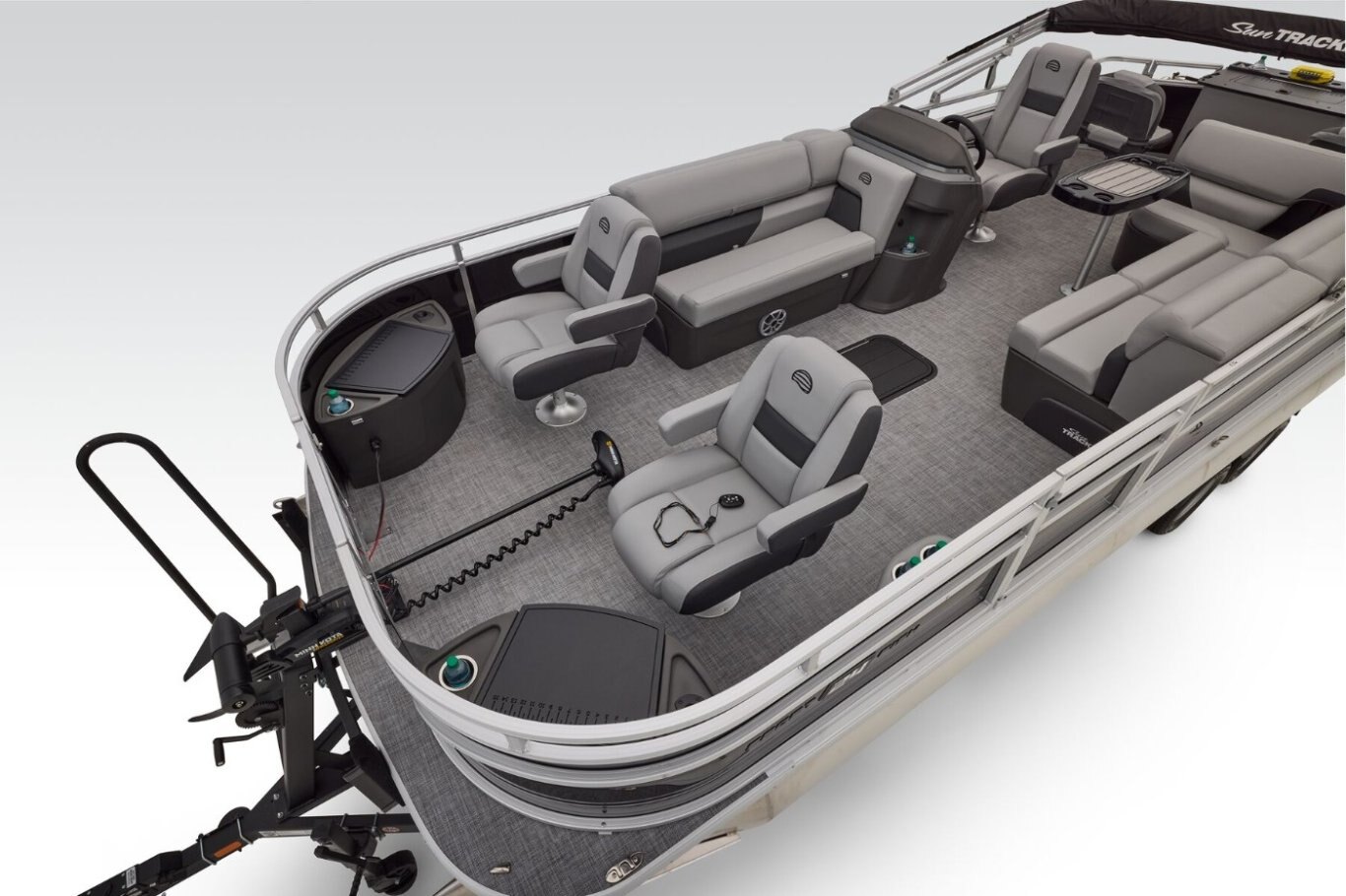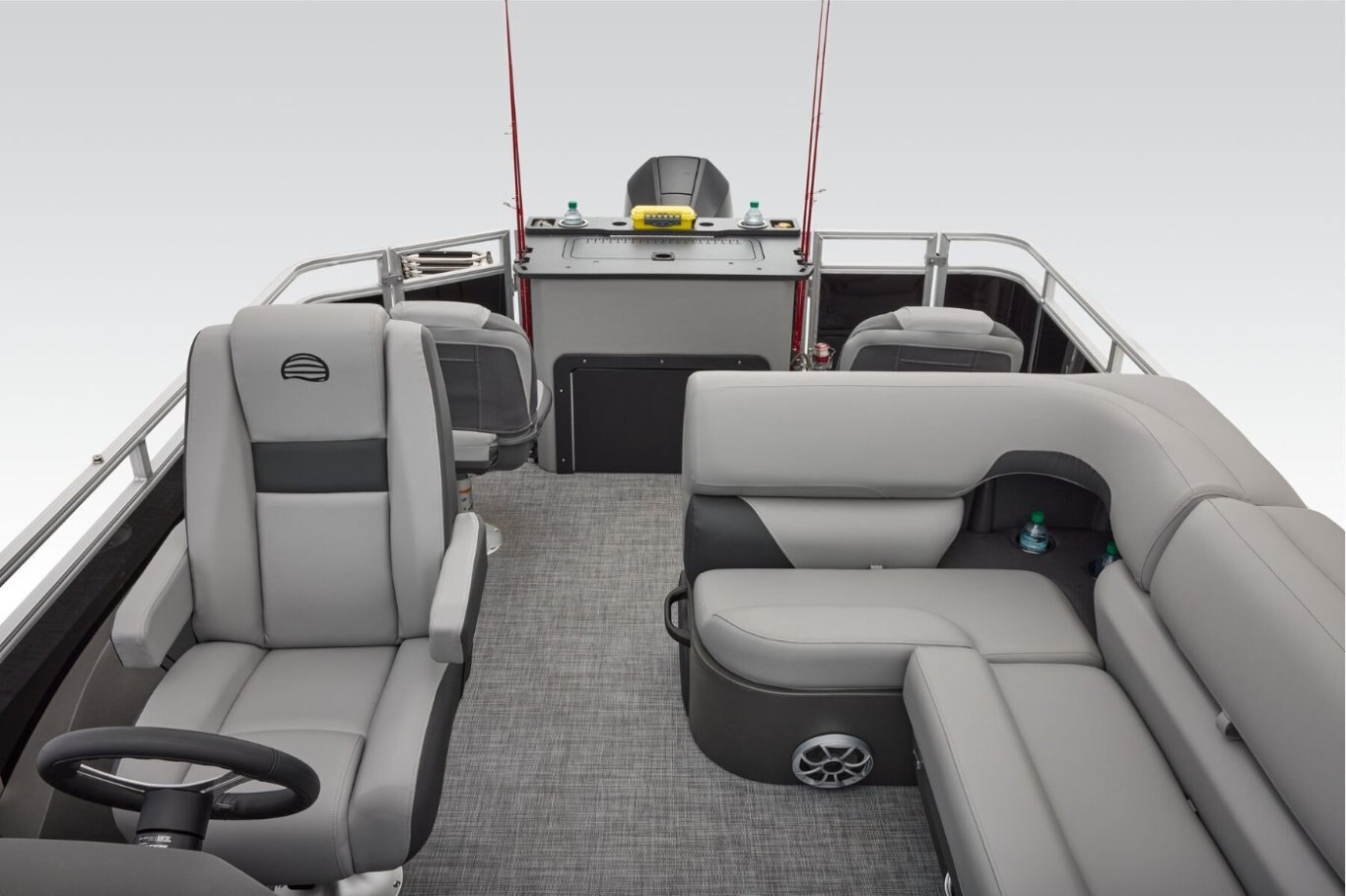 Three pontoon logs deliver massive boosts in power and stability for full days of thrills and relaxation. The front fishing deck gives you two folding and removable fishing chairs, a rail-mounted rod and tool holder, and a starboard storage compartment that boasts a cupholder, rod holder, and a composite lid with a fish ruler. On the port side, you’ll find a 16-gal. aerated livewell with a drink and rod holder, as well as an integrated fish ruler. A deck full of couches, a bench, and an aft bed with hidden storage compartments under a retractable 10 ' bimini top deliver ultimate relaxation. If you're on the hunt for a pontoon that offers a full range of features that will please any style of adventure, the SPORTFISH 24 XP3 is the way to go. |