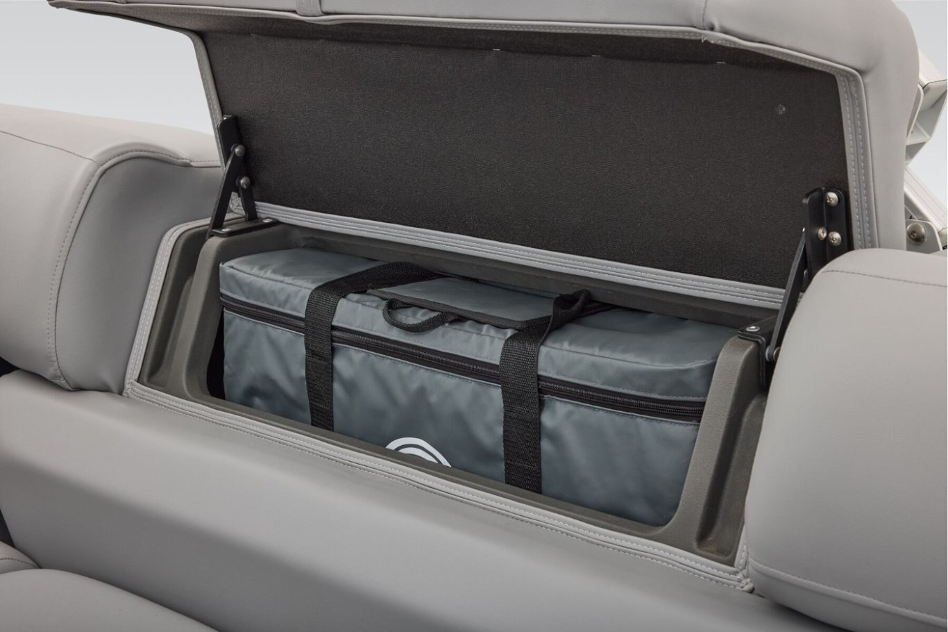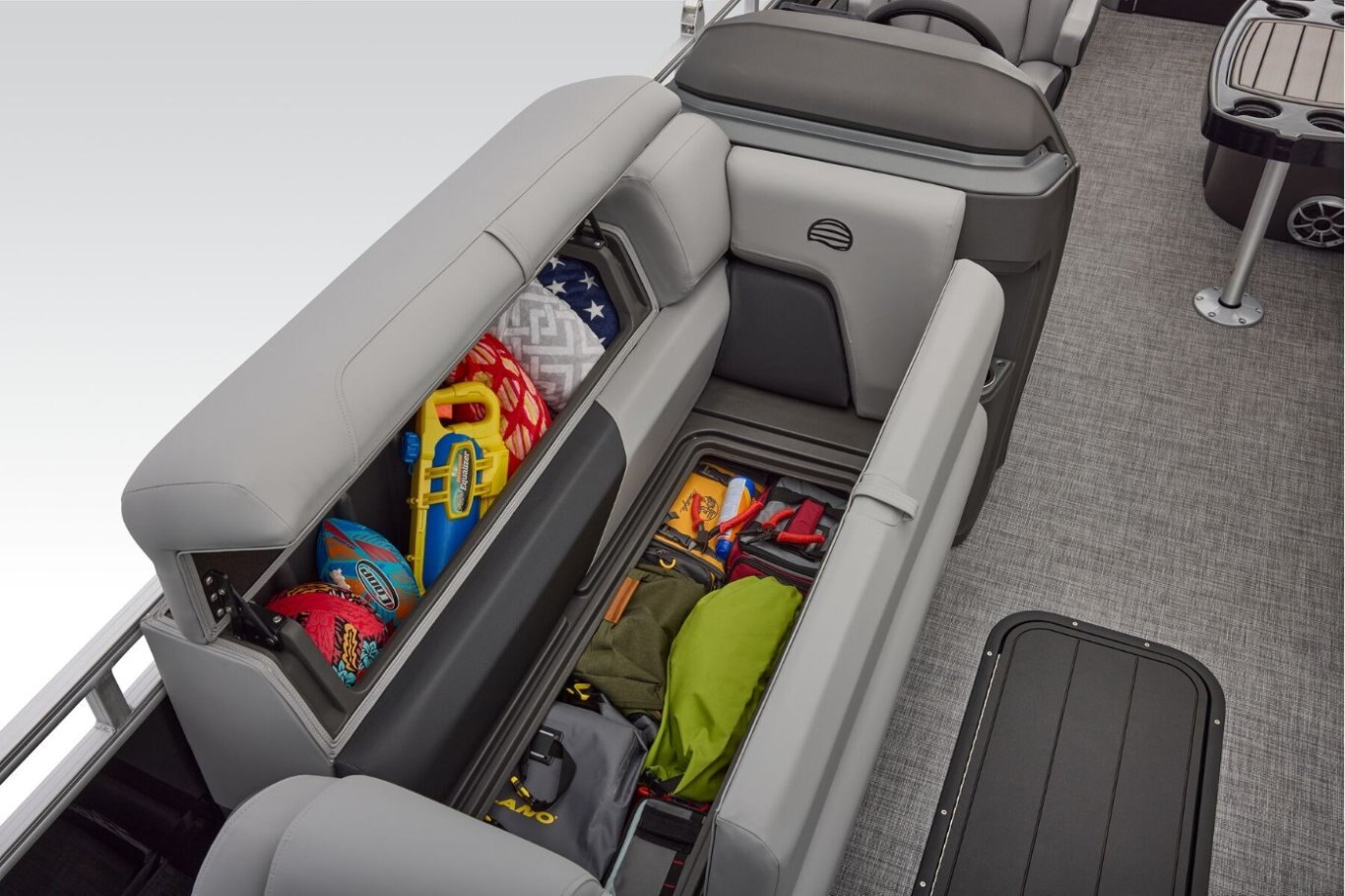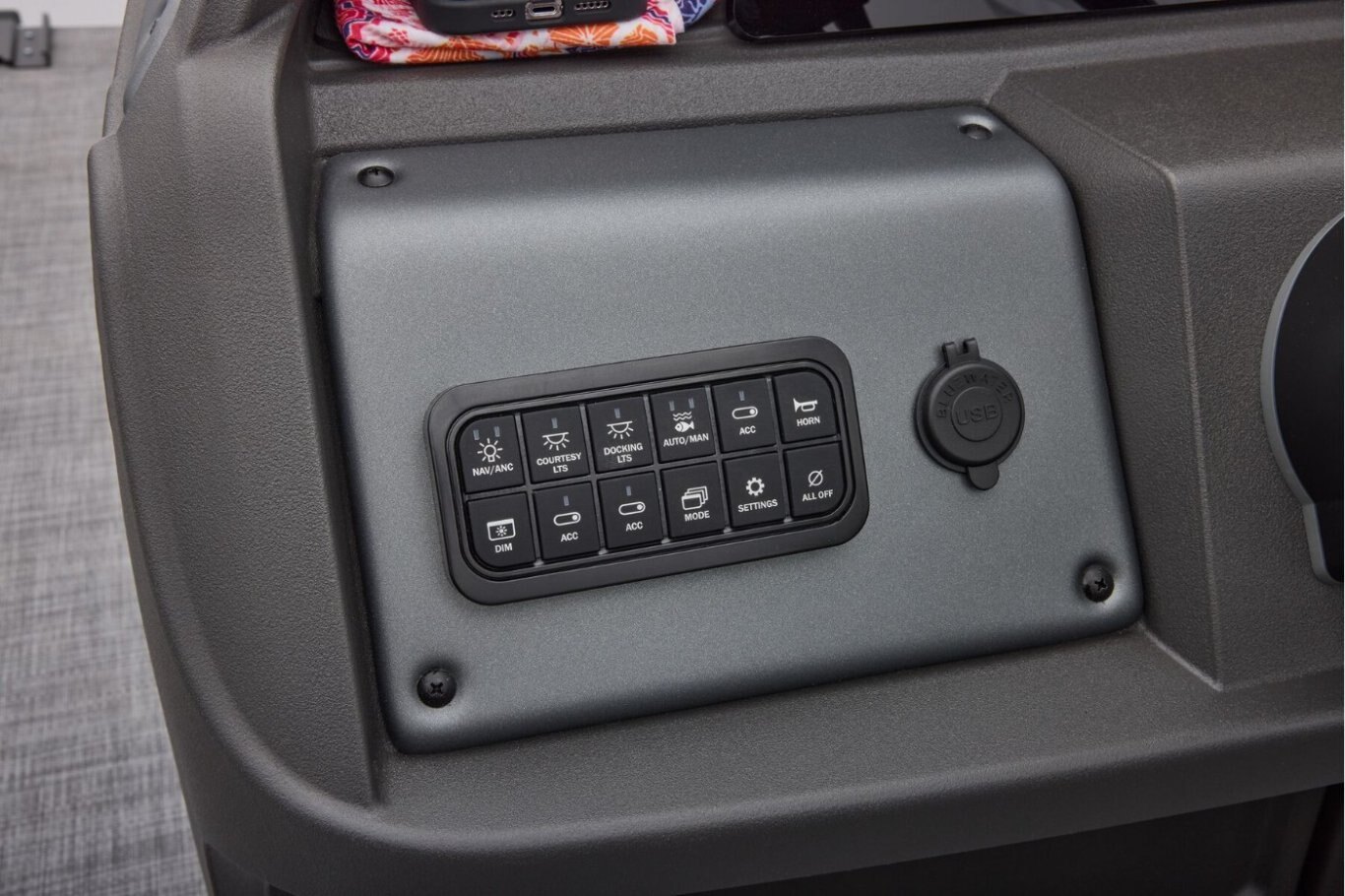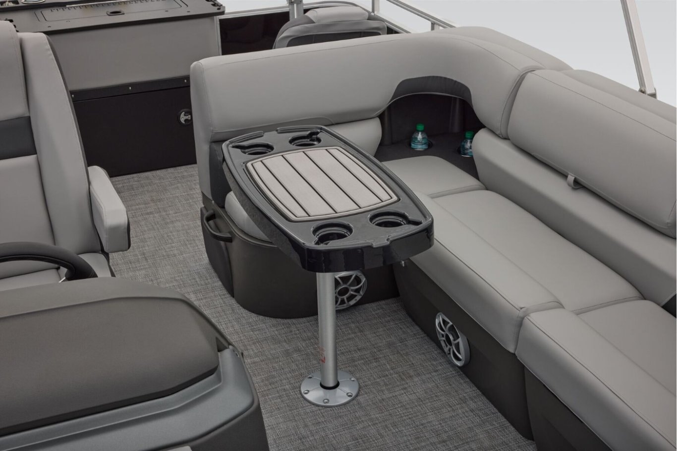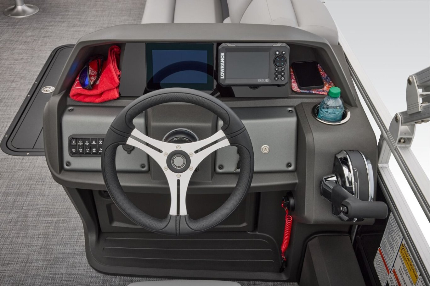 Three pontoon logs deliver massive boosts in power and stability for full days of thrills and relaxation. The front fishing deck gives you two folding and removable fishing chairs, a rail-mounted rod and tool holder, and a starboard storage compartment that boasts a cupholder, rod holder, and a composite lid with a fish ruler. On the port side, you’ll find a 16-gal. aerated livewell with a drink and rod holder, as well as an integrated fish ruler. A deck full of couches, a bench, and an aft bed with hidden storage compartments under a retractable 10 ' bimini top deliver ultimate relaxation. If you're on the hunt for a pontoon that offers a full range of features that will please any style of adventure, the SPORTFISH 24 XP3 is the way to go. |