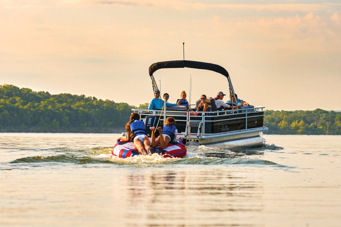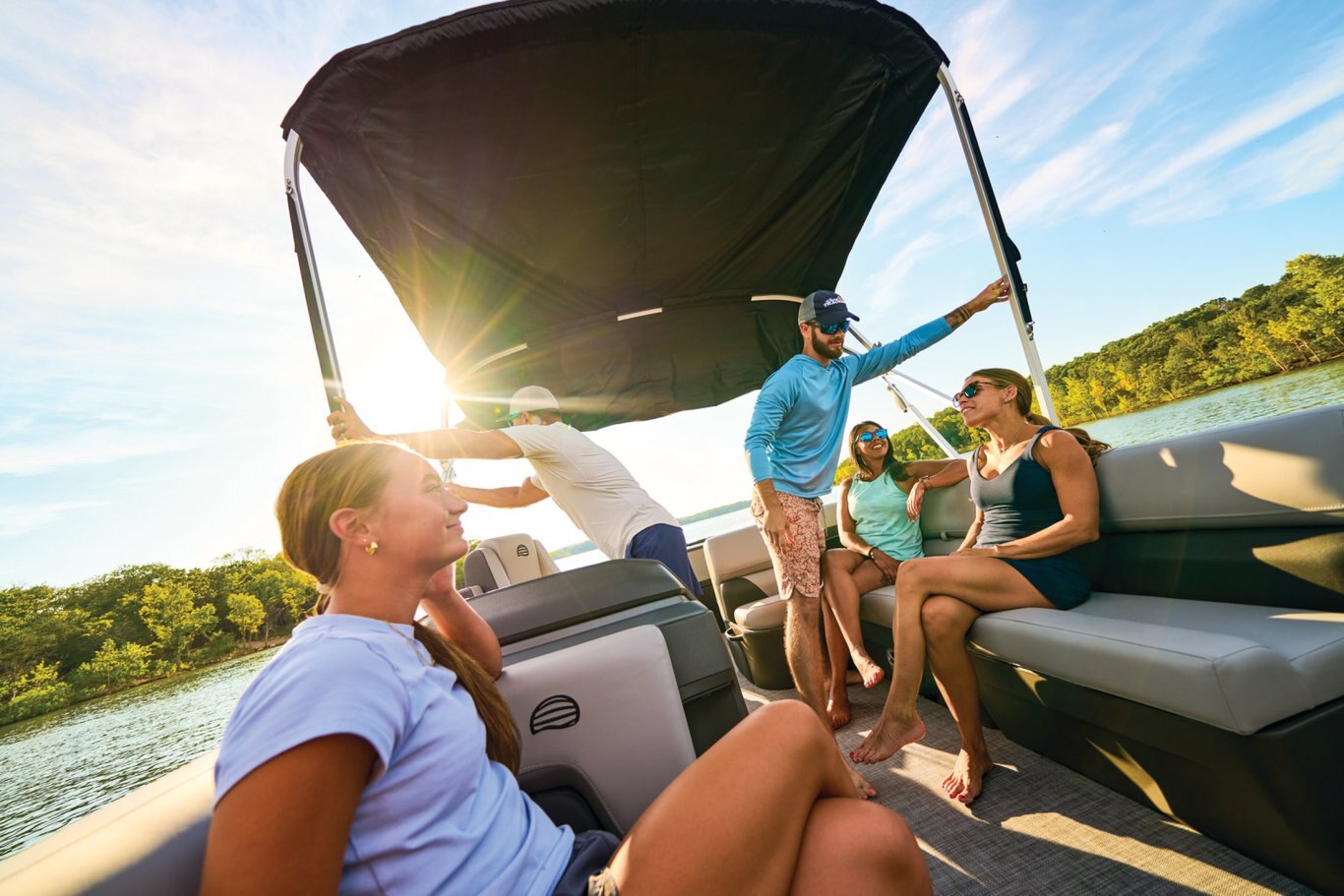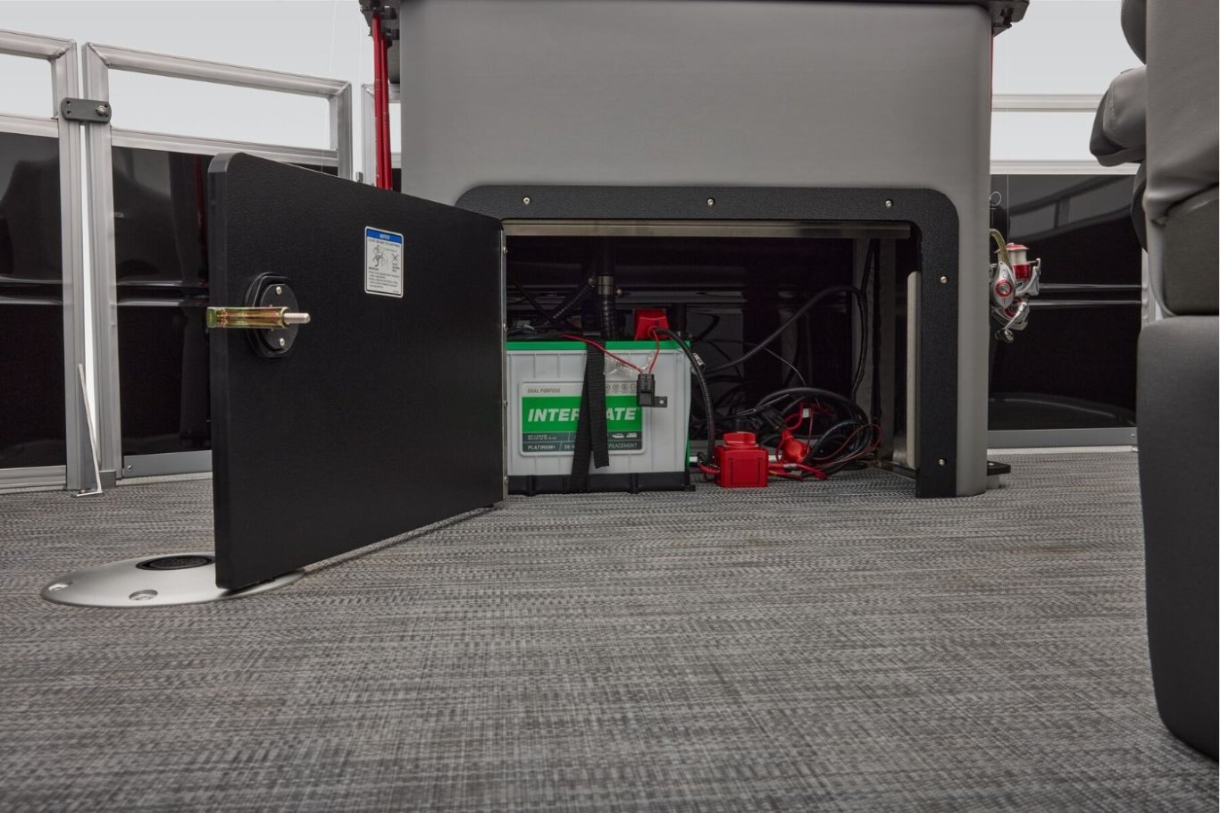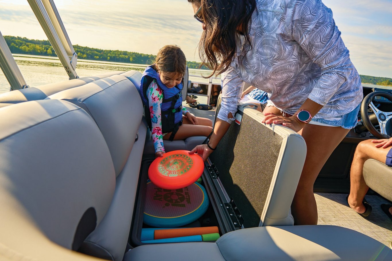Three pontoon logs deliver massive boosts in power and stability for full days of thrills and relaxation. The front fishing deck gives you two folding and removable fishing chairs, a rail-mounted rod and tool holder, and a starboard storage compartment that boasts a cupholder, rod holder, and a composite lid with a fish ruler. On the port side, you’ll find a 16-gal. aerated livewell with a drink and rod holder, as well as an integrated fish ruler. A deck full of couches, a bench, and an aft bed with hidden storage compartments under a retractable 10 ' bimini top deliver ultimate relaxation. If you're on the hunt for a pontoon that offers a full range of features that will please any style of adventure, the SPORTFISH 24 XP3 is the way to go. |