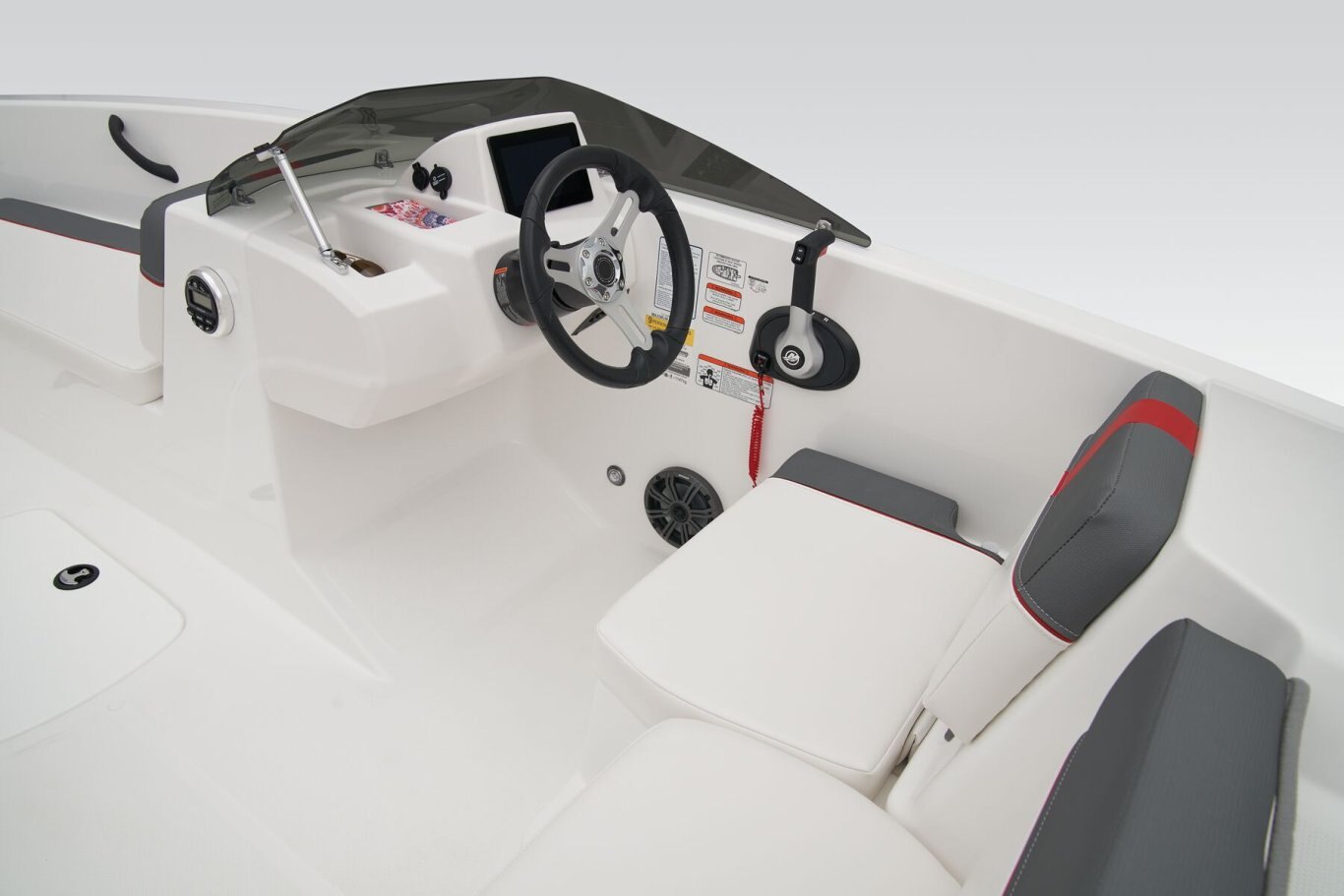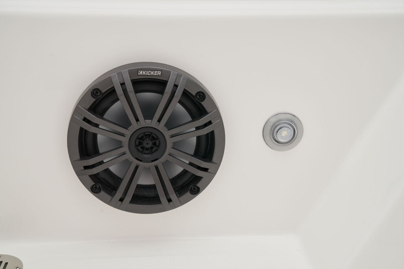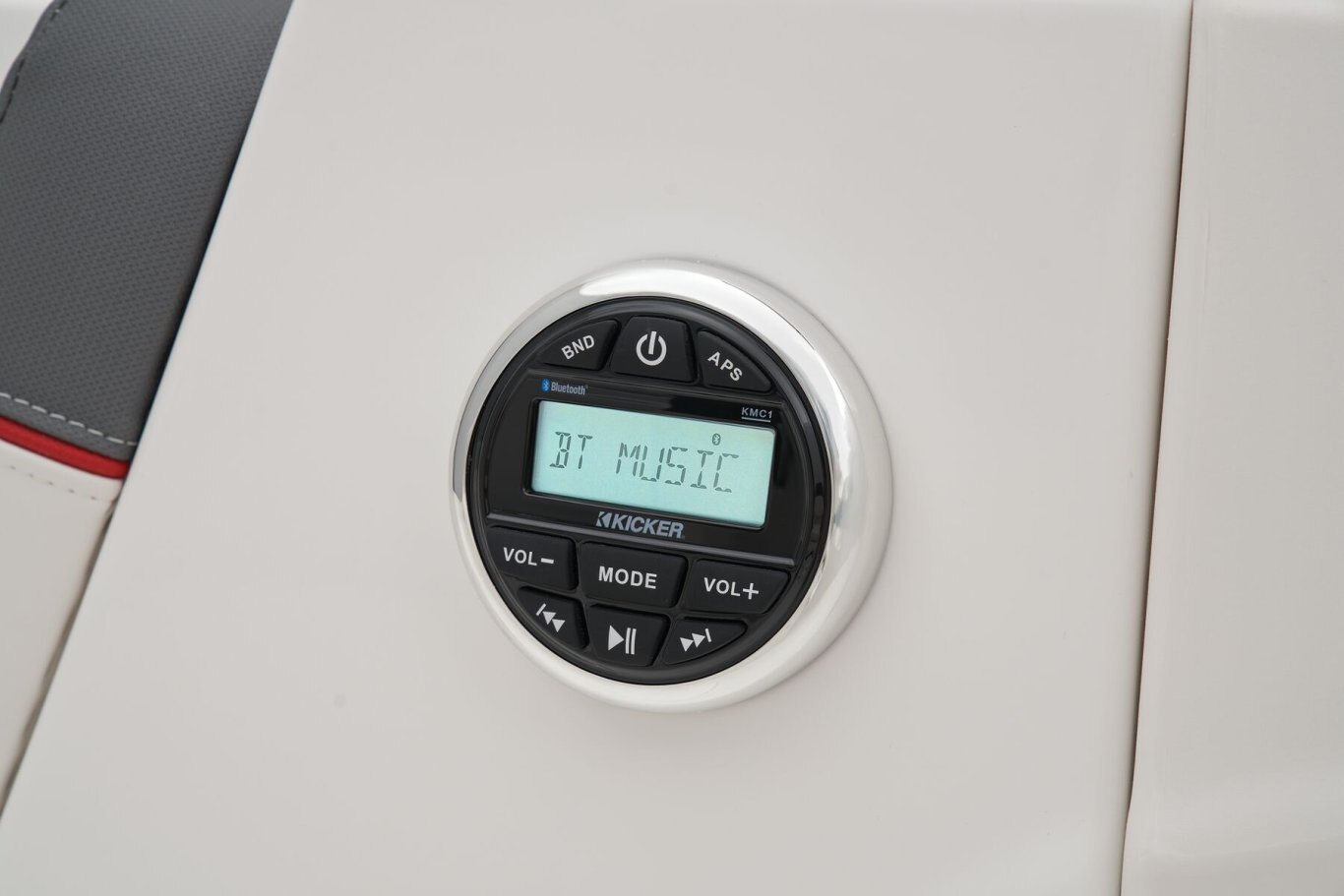 This 9-passenger midsize runabout boat is built for performance, complete with a POWERGLIDE® hull with HYDROSTEP strakes. The pilot's console features a 7" touch screen that delivers information such as motor vitals, speed, and depth. Play your adventure's soundtrack through the 4-speaker Kicker® stereo as you pull tubes, skiers, and