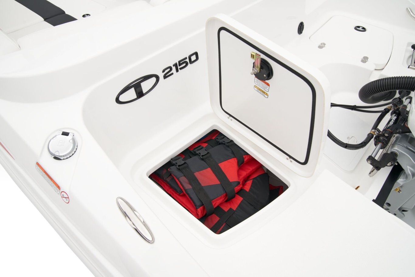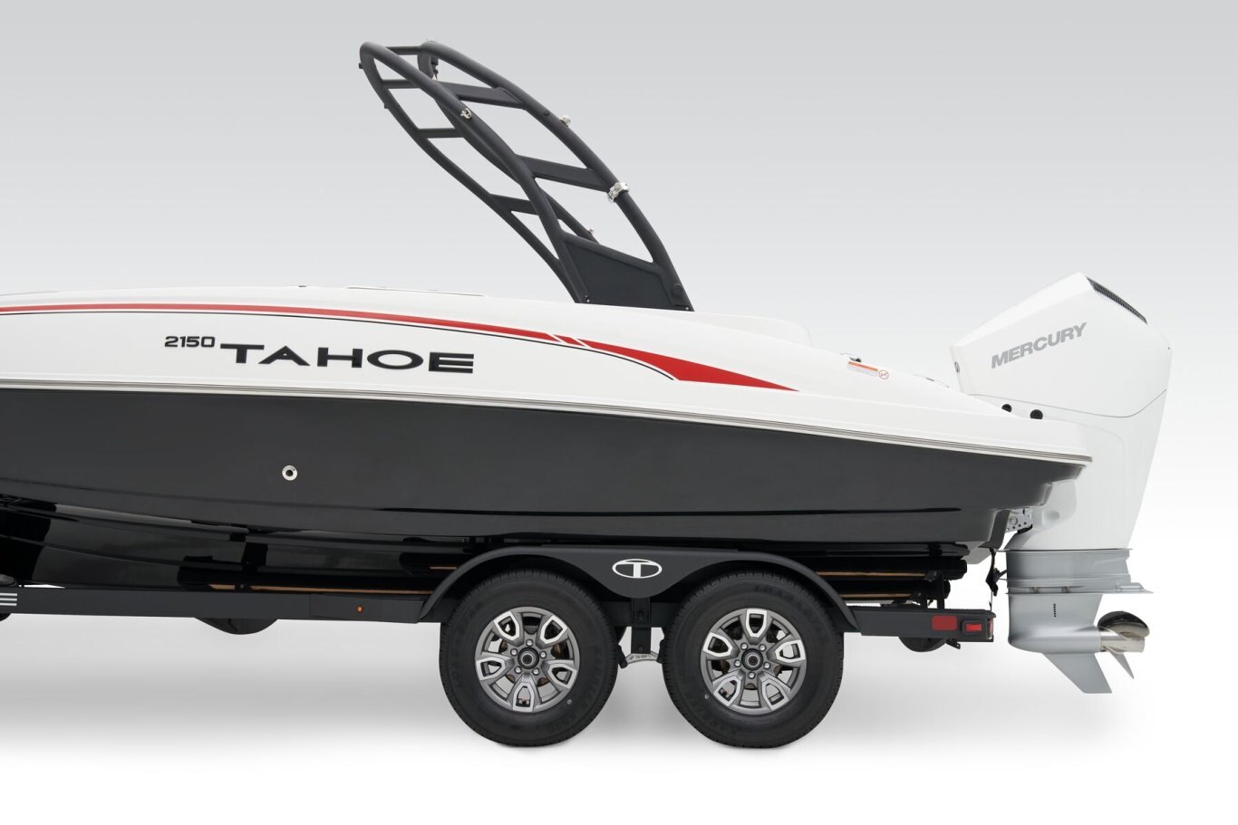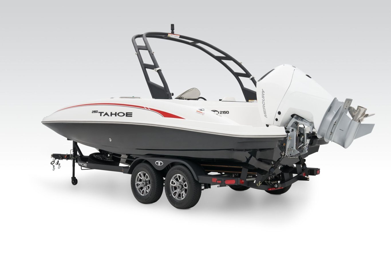 This TAHOE® can hold up to 11 passengers looking for days of fun on the water. Its open deck is built to serve anglers, sunbathers, and watersport enthusiasts alike. The wraparound bow lounge and L-shaped aft lounge sport hidden storage compartments to make the perfect living room on the water. The removable 36-qt. cooler and removable table are just icing on the cake! For the fishers, there's the 15-gal. aerated livewell with a pull-out sprayer and rod holders. An available fishing package adds a trolling motor, fish finder, and dual fishing seats. Thrill-seekers will love the in-floor wakeboard and ski storage compartment, standard removable ski-tow pylon, and 4-speaker Kicker® stereo with Bluetooth® compatibility. Pull up the bimini top and relax while the kids jump off the swim platform and get back on the boat using the aft or bow boarding ladders. The helm features traditional gauges and waterproof switches around a sport steering wheel. The 2026 TAHOE® 2150 comes standard with a 150hp Mercury® XL Pro XS® FourStroke outboard motor and has a recommended maximum 225hp rating. |