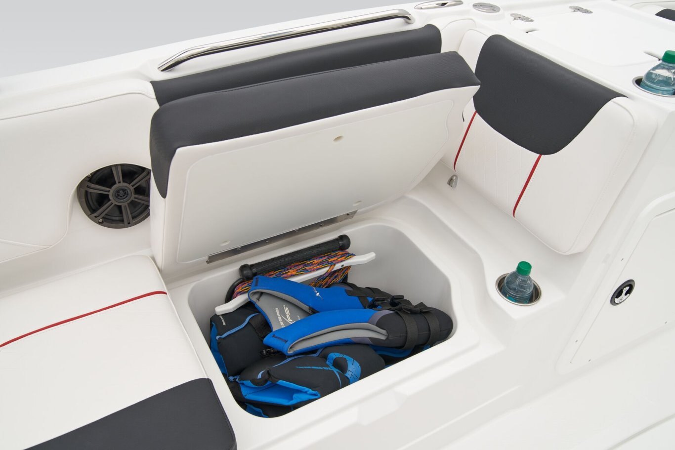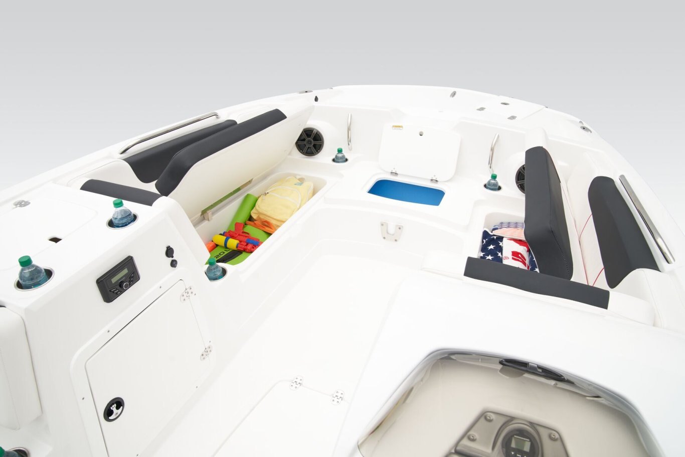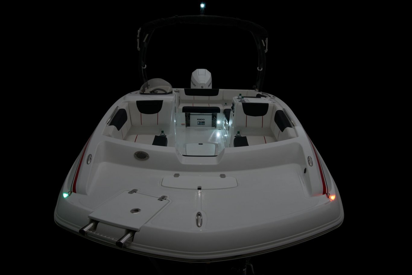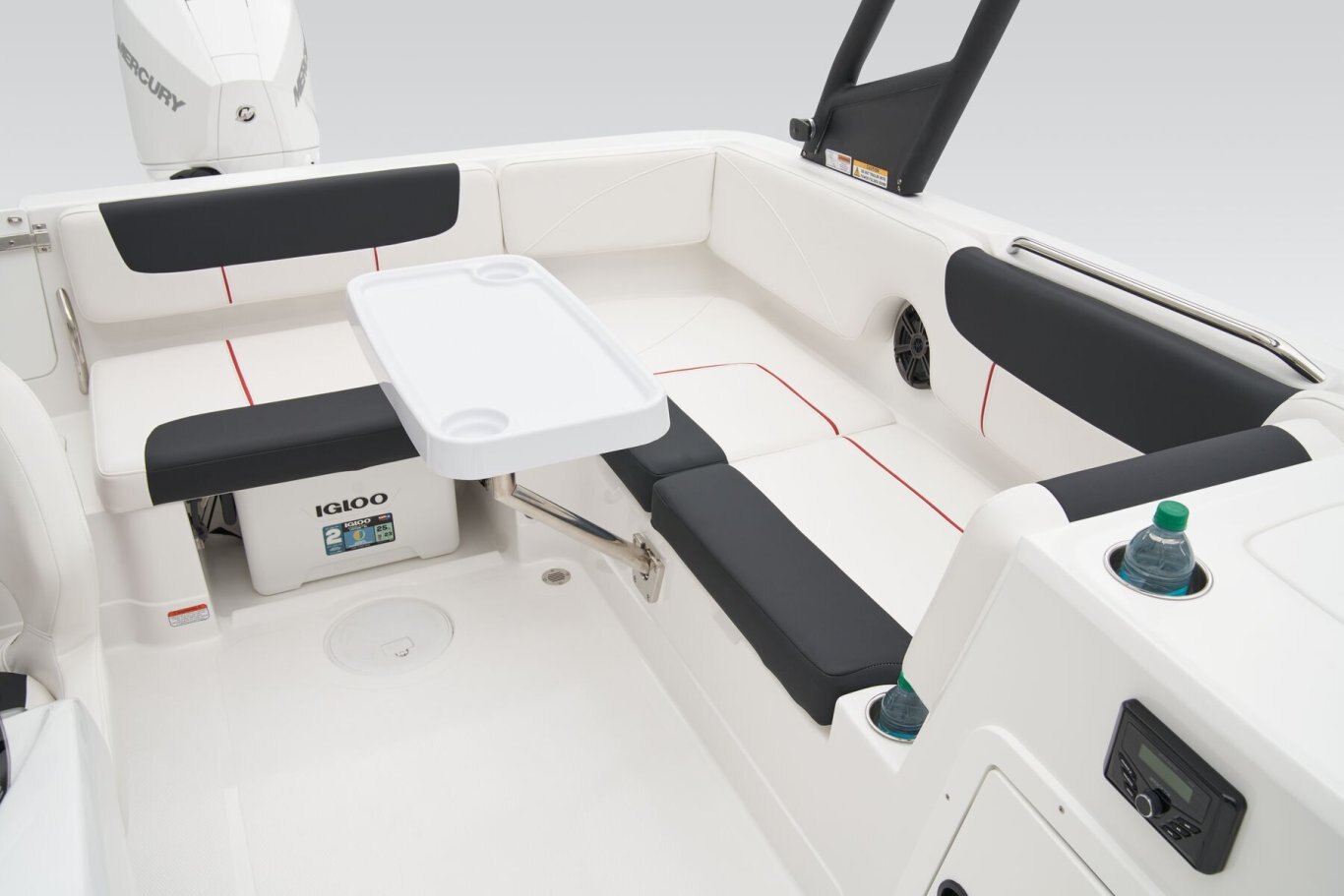 This TAHOE® can hold up to 11 passengers looking for days of fun on the water. Its open deck is built to serve anglers, sunbathers, and watersport enthusiasts alike. The wraparound bow lounge and L-shaped aft lounge sport hidden storage compartments to make the perfect living room on the water. The removable 36-qt. cooler and removable table are just icing on the cake! For the fishers, there's the 15-gal. aerated livewell with a pull-out sprayer and rod holders. An available fishing package adds a trolling motor, fish finder, and dual fishing seats. Thrill-seekers will love the in-floor wakeboard and ski storage compartment, standard removable ski-tow pylon, and 4-speaker Kicker® stereo with Bluetooth® compatibility. Pull up the bimini top and relax while the kids jump off the swim platform and get back on the boat using the aft or bow boarding ladders. The helm features traditional gauges and waterproof switches around a sport steering wheel. The 2026 TAHOE® 2150 comes standard with a 150hp Mercury® XL Pro XS® FourStroke outboard motor and has a recommended maximum 225hp rating. |